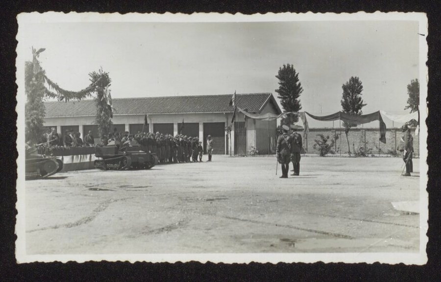 La fotografia, parte di un gruppo di 10 immagini, riprende la cerimonia di giuramento nella Caserma "XXVIII Ottobre" di Codroipo, del 24 maggio 1934.