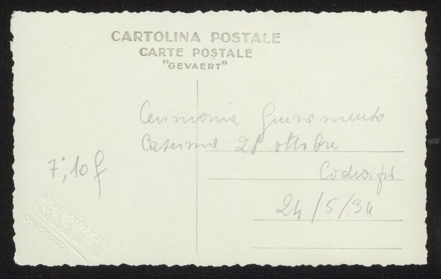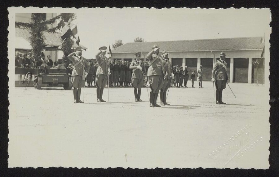 La fotografia, parte di un gruppo di 10 immagini, riprende la cerimonia di giuramento nella Caserma "XXVIII Ottobre" di Codroipo, del 24 maggio 1934.