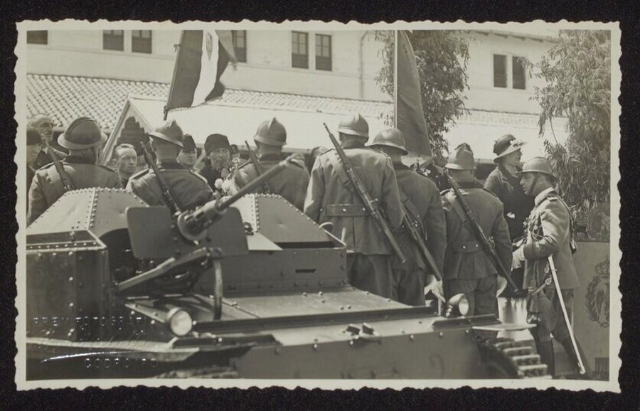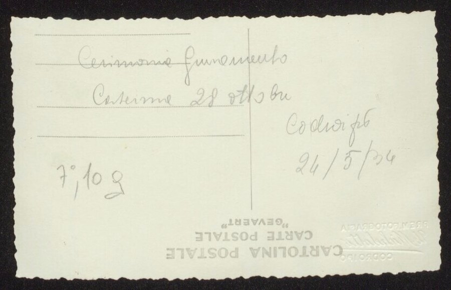 La fotografia, parte di un gruppo di 10 immagini, riprende la cerimonia di giuramento nella Caserma "XXVIII Ottobre" di Codroipo, del 24 maggio 1934.