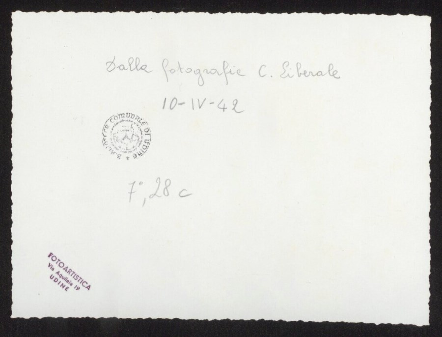 L'immagine riprende la scala di accesso al Tempio Ossario di Udine, il 10 aprile 1942, in occasione della cerimonia in memoria dei quasi mille Alpini del Battaglione "Gemona" caduti nell’affondamento, il 28 marzo 1942, della nave Galilea che doveva riportarli in Patria dopo le vicende sui monti della Grecia. Nello scatto si vedono le due ali di Autorità militari e civili sui lati della scala, la grande corona d'alloro con il nastro con la scritta "Il Duce" deposta al centro della scala, il picchetto di Alpini e Carabinieri al centro. La cerimonia assurse a celebrazione commovente di tutti gli Alpini caduti della "Divisione Julia" e degli altri Battaglioni dell'8° Reggimento.