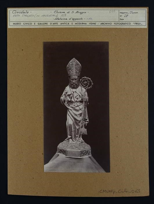 Cividale del Friuli, chiesa di San Pietro e San Biagio: statuina d'argento a tutto tondo, opera di un orafo cividalese della cerchia di Lionello Nicolò di Erasmo (1462).