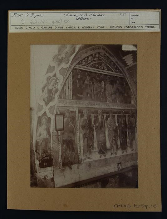 Forni di Sopra, Cella, chiesa di San Floriano: presbiterio, ciclo di affreschi di Gianfrancesco da Tolmezzo con quindici Santi e Dottori (1500).