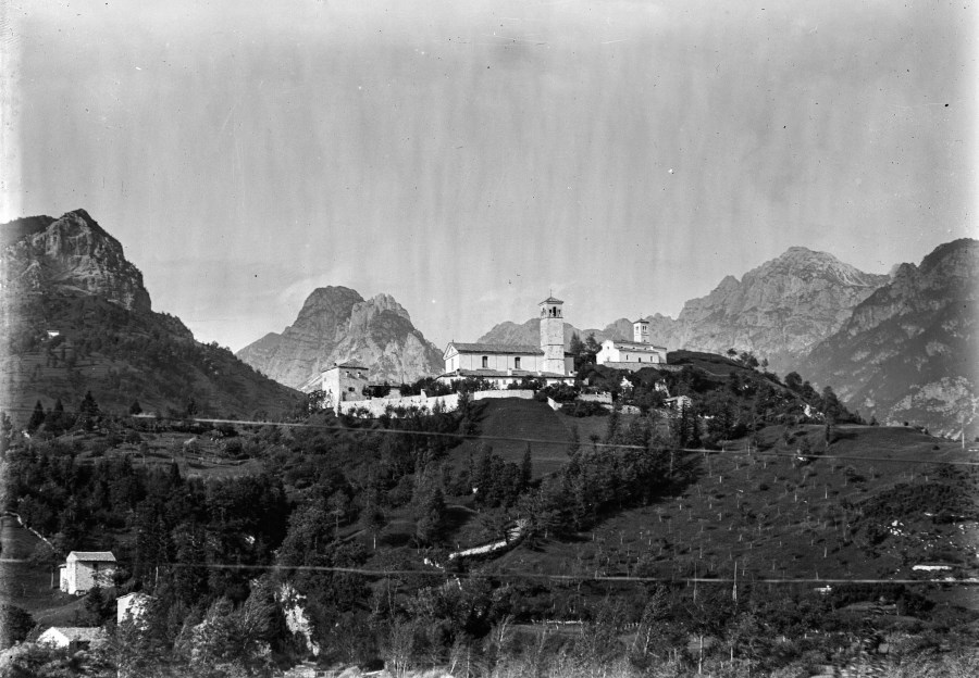 Veduta della Chiesa di San Gallo, un monastero situato sul colle di Santo Spirito, in località Moggio di Sopra, nel comune di Moggio Udinese.