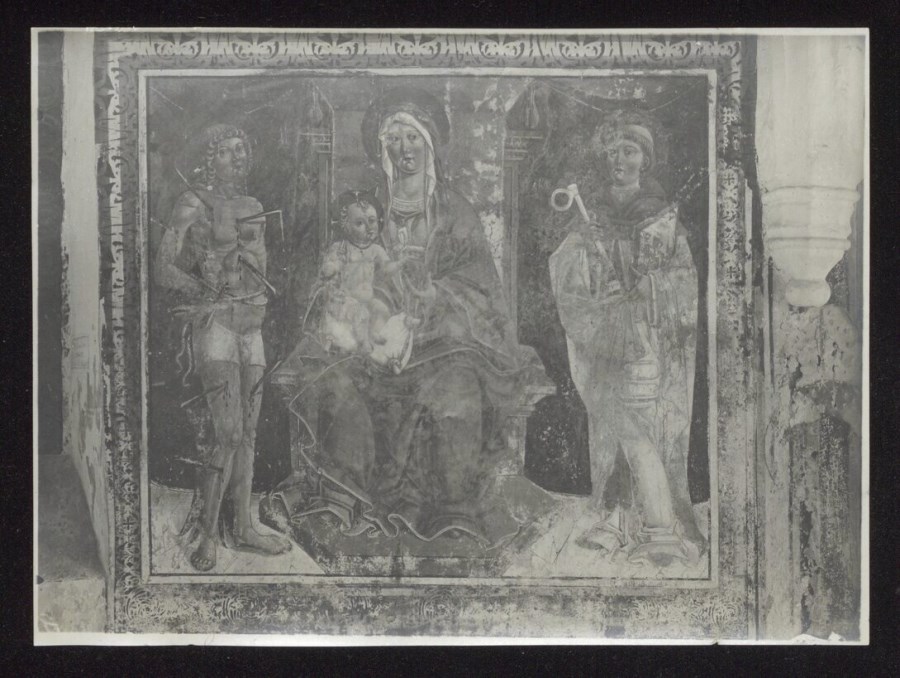 Colza. Chiesa di S. Giorgio. La Madonna coi SS. Leonardo e Sebastiano. Affresco di Pietro Foluto