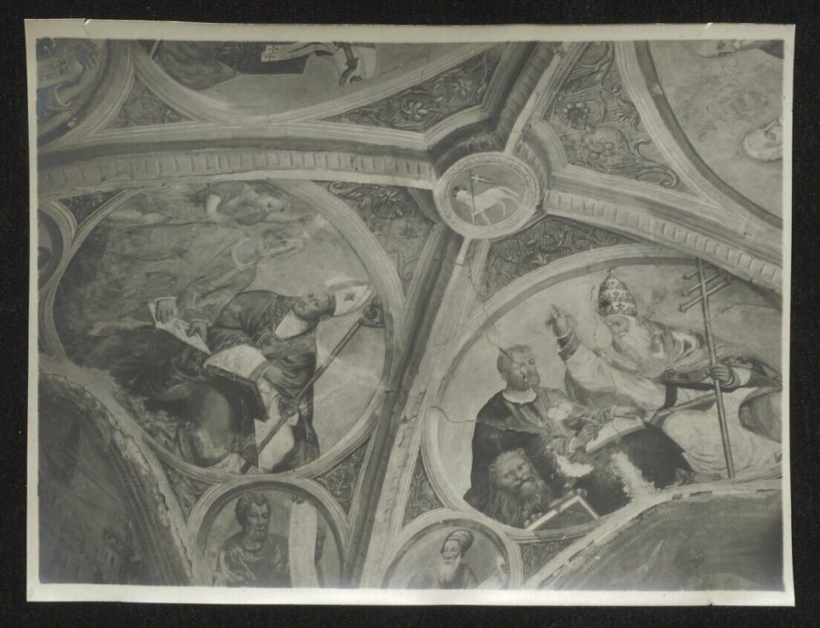 Decorazione ad affresco di Giulio Urbanis, datata 1588, nel presbiterio della chiesa di Santa Giuliana a Fresis di Enemonzo (non si tratta infatti degli affreschi di Pietro Foluto nella chiesa di San Giorgio a Colza, come erroneamente indicato dalla didascalia sul verso della fotografia), in cui la volta è decorata con Padri e Dottori della Chiesa, Profeti ed Evangelisti inseriti dentro dei tondi.