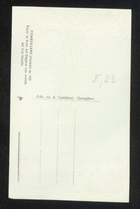 Comeglians (Carnia) m. 553. Ponte in ferro sul Degano con veduta del Col Gentile