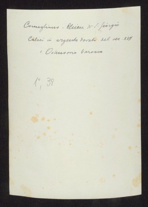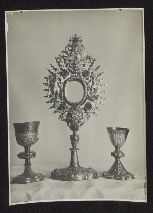 Comeglians. Chiesa di S. Giorgio. Calici in argento dorato del sec. XVII e ostensorio barocco