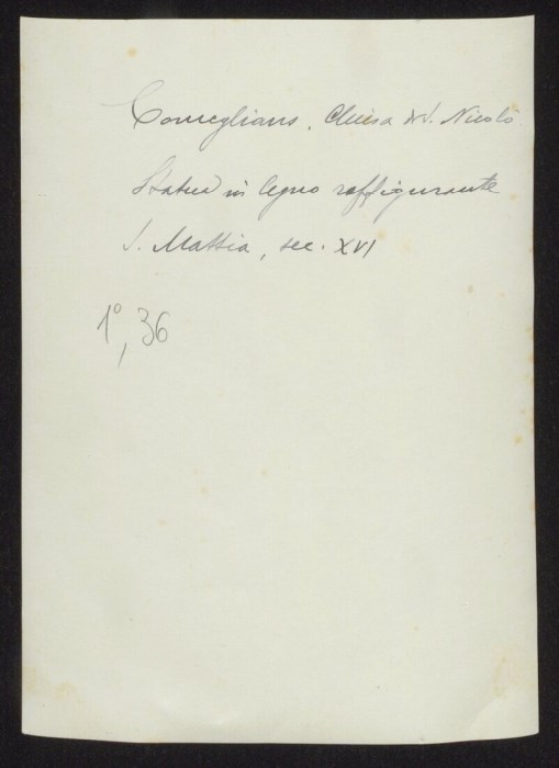 Comeglians. Chiesa di S. Nicolò. Statua in legno raffigurante S. Mattia, sec. XVI