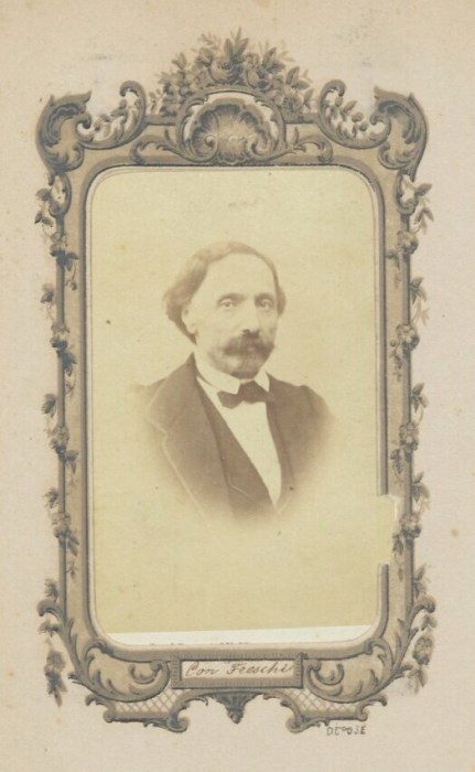 Ritratto in studio del Conte Gherardo Freschi (1804-1893). Nato a Ronchis di Faedis (Udine), fu un agronomo, imprenditore agricolo e divulgatore friulano. Dopo gli studi a Padova, si dedicò alla gestione delle proprietà di Ramuscello (PN), distinguendosi per le sue innovazioni. Il suo forte interesse per il progresso economico e culturale delle classi povere lo portò a fondare la tipografia e il giornale «L’amico del contadino» (1842-1848) e a co-fondare l'Associazione agraria friulana, di cui fu presidente a vita. Impegnato nelle lotte risorgimentali, collaborò con Manin nel 1848, cosa che lo costrinse all'esilio in Francia e poi in Egitto, dove si dedicò agli studi di medicina omeopatica. Rientrato, aprì un dispensario omeopatico gratuito a Ramuscello e continuò attivamente la sua opera di divulgazione agraria e sperimentazione (in viticoltura, come nella crisi della pebrina - una malattia dei bachi da seta) fino alla morte, avvenuta nel 1893.