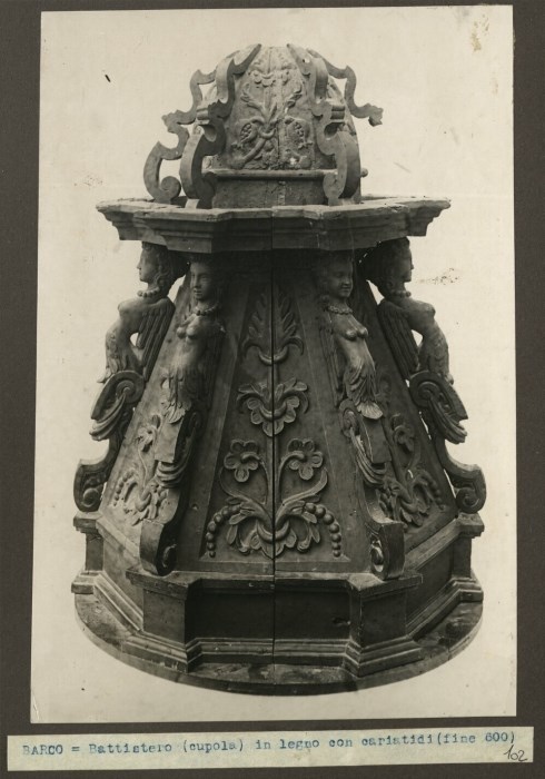 BARCO = Battistero (cupola) in legno con cariatidi (fine 600)
