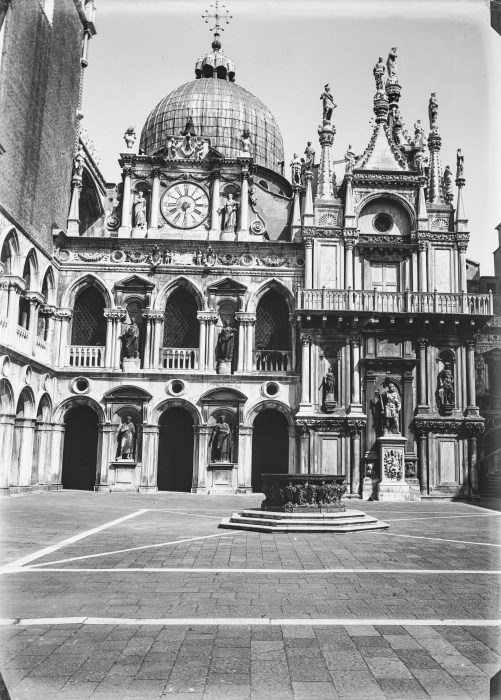 Cortile interno del Palazzo Ducale di Venezia, con il particolare della Loggia Foscari e la vera da pozzo in bronzo a opera di Niccolò dei Conti e di Alfonso Alberghetti nel 1556.