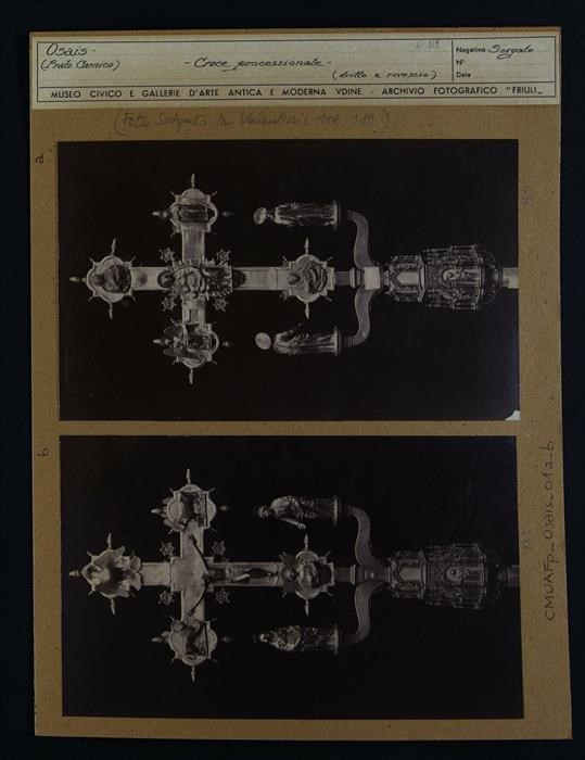 Prato Carnico, Osais, chiesa di San Leonardo: croce processionale d'argento cesellata e figure gettate (XVI secolo).