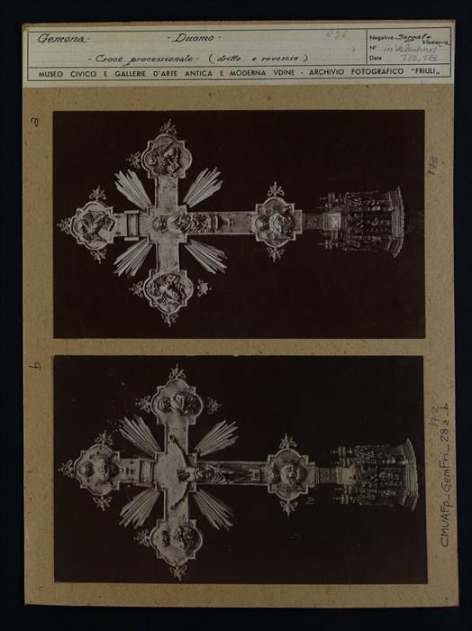 Gemona del Friuli, duomo: croce processionale in argento sbalzato e dorato (XV secolo), probabilmente realizzata da una bottega friulana di orafi (recto).