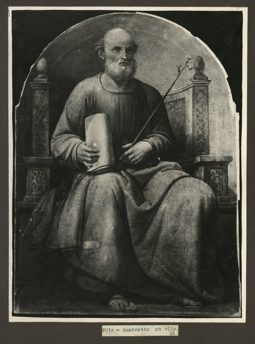 Riproduzione fotografica di un dipinto ad olio raffigurante un Santo e conservato presso la Chiesa di Santa Maria della Presentazione a Puja di Prata di Pordenone.