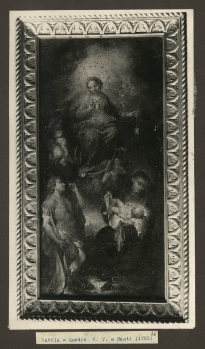 Riproduzione fotografica di un dipinto con cornice lignea e raffigurante "La Beata Vergine con i Santi" e conservato presso la Chiesa delle Sante Perpetua e Felicita a Bannia di Fiume Veneto.