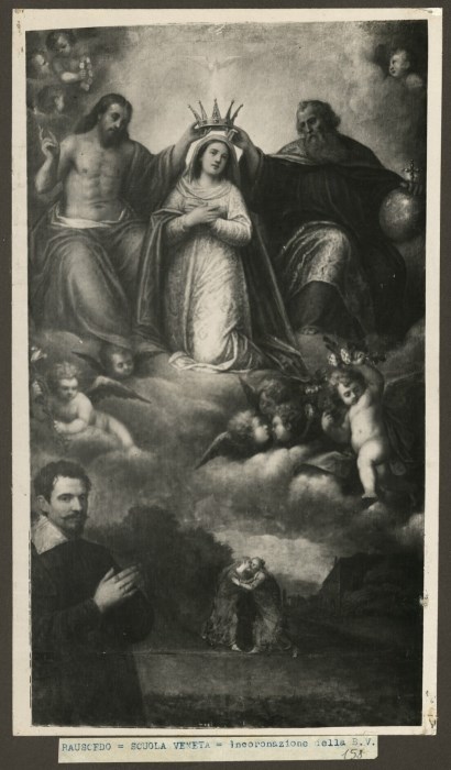 Riproduzione fotografica di un dipinto raffigurante "L'incoronazione della Beata Vergine" e conservato presso la Chiesa di Santa Maria e San Giuseppe a Rauscedo di San Giorgio della Richinvelda.