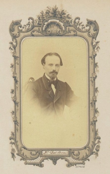 Ritratto in studio del dottor Antonio Dal Bon seduto su una sedia nella scenografia dello studio fotografico.