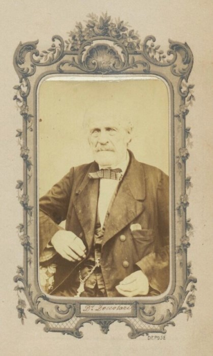 Ritratto in studio del Dottor Zoccolari seduto in una poltroncina da scenografia.