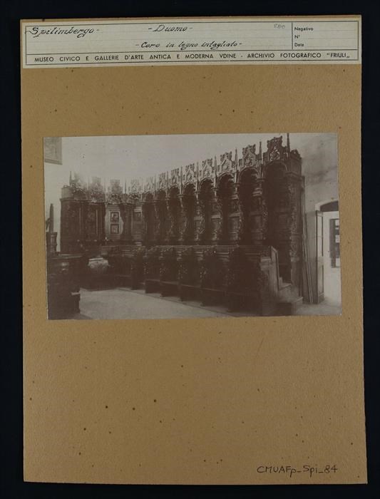 Spilimbergo, chiesa dei Santi Giuseppe e Pantaleone: leggio e coro ligneo (arricchito da intarsi, nicchie, cuspidi, conchiglie e trafori) intagliati da Marco di Vicenza (1475-1477). Il coro, costituito da 24 stalli su due ordini, proviene dal duomo di Spilimbergo.