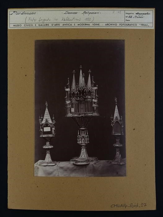 Pordenone, duomo: tre reliquiari in stile gotico di epoca medievale, realizzati in argento dorato con il cosiddetto gusto d’alemagna.