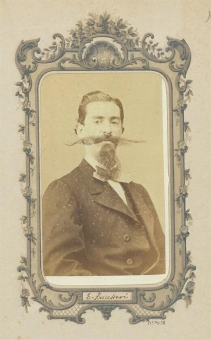 Ritratto in studio del signor E. Zuccheri con caratteristici baffi e barba