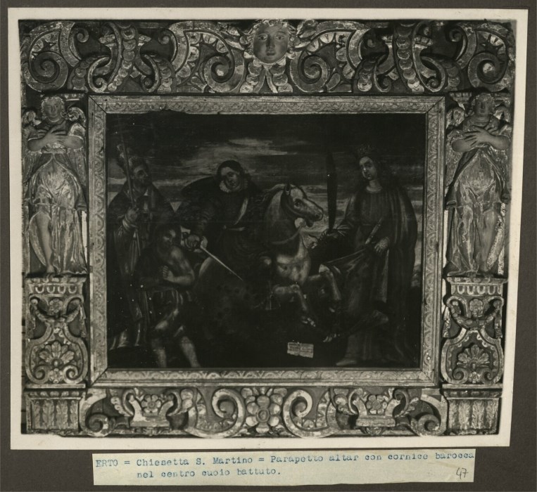Nell'immagine il parapetto dell'altare conservato presso la Chiesa di San Martino nella frazione di San Martino a Erto. Con cornice barocca, al centro dipinto su cuoio battuto e raffigurate San Martino a cavallo, il povero con cui San Martino divide il proprio mantello, la Madonna e, a sinistra, probabilmente Costantino II.