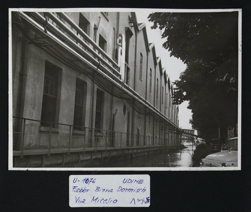 Udine, via Giovanni Micesio: stabilimento della Birreria Dormisch (1892) con il canale Ledra.