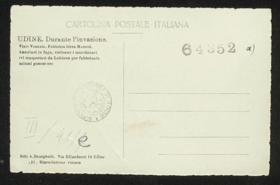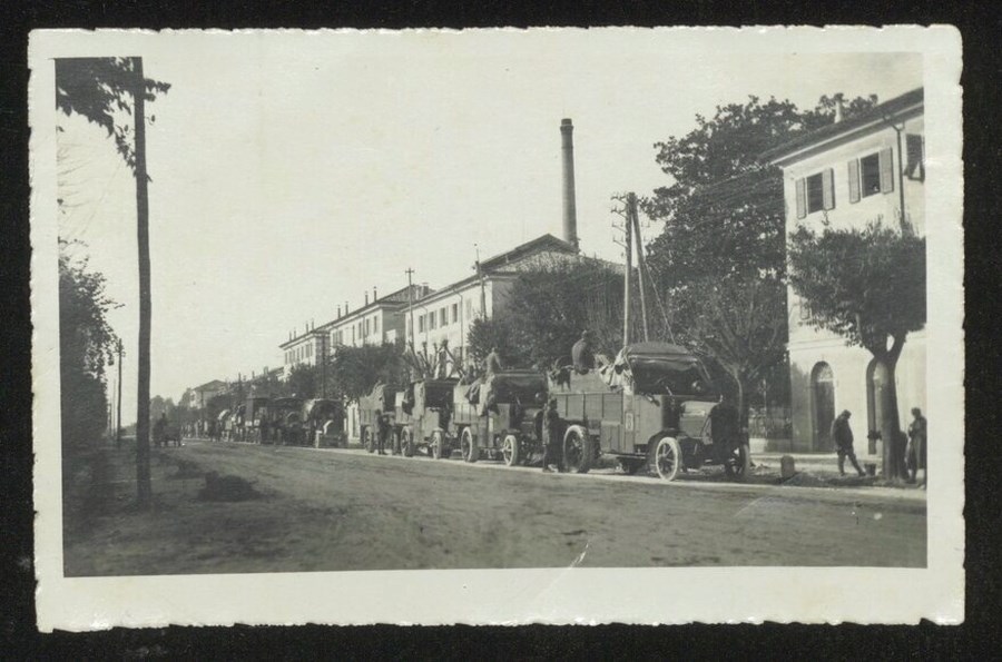 Viale Venezia. Fabbrica birra Moretti. Austriaci in fuga, caricano i macchinari ivi trasportati da Lubiana per fabbricare salumi gasose ecc