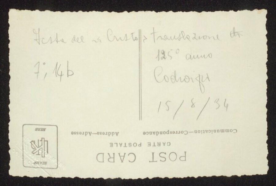 Festa del "Cristo". Translazione 125° anno. Codroipo. 15/8/1934