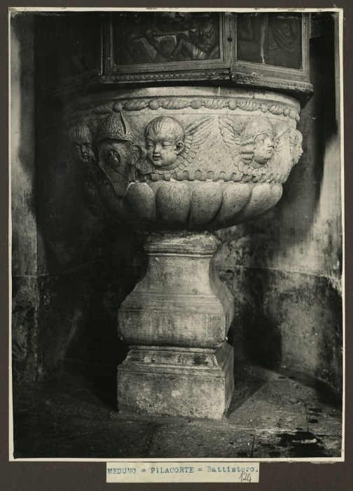 Fonte battesimale conservata presso la Chiesa di Santa Maria Maggiore a Meduno.