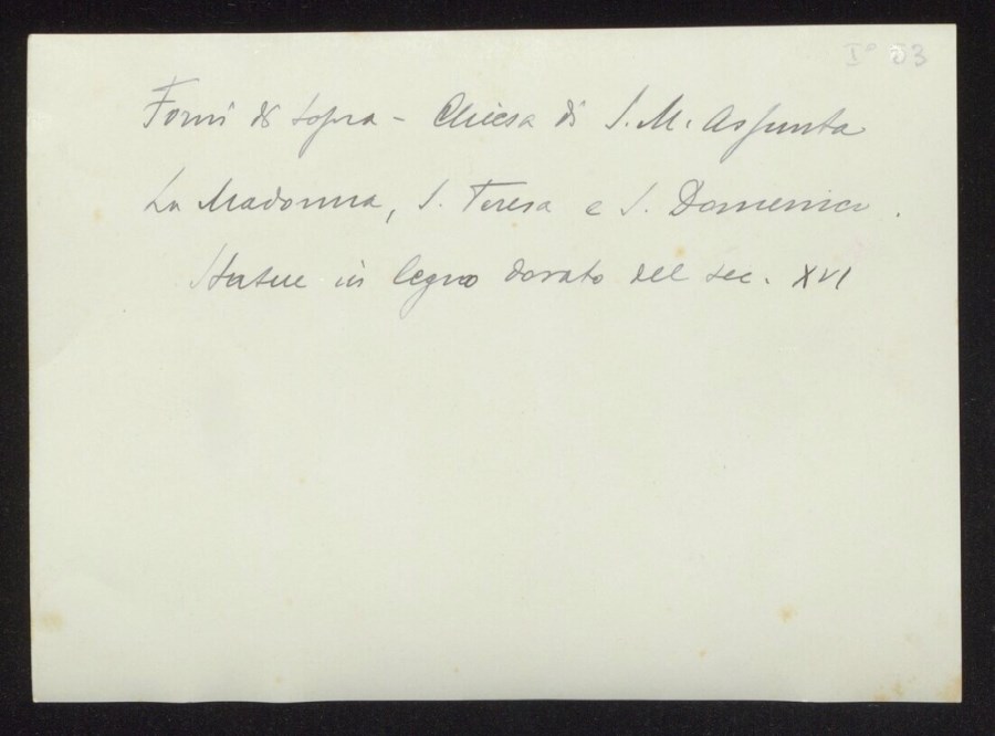 Forni di Sopra. Chiesa di S. Maria Assunta. La Madonna, S. Teresa e S. Domenico. Statue in legno dorato del sec. XVI