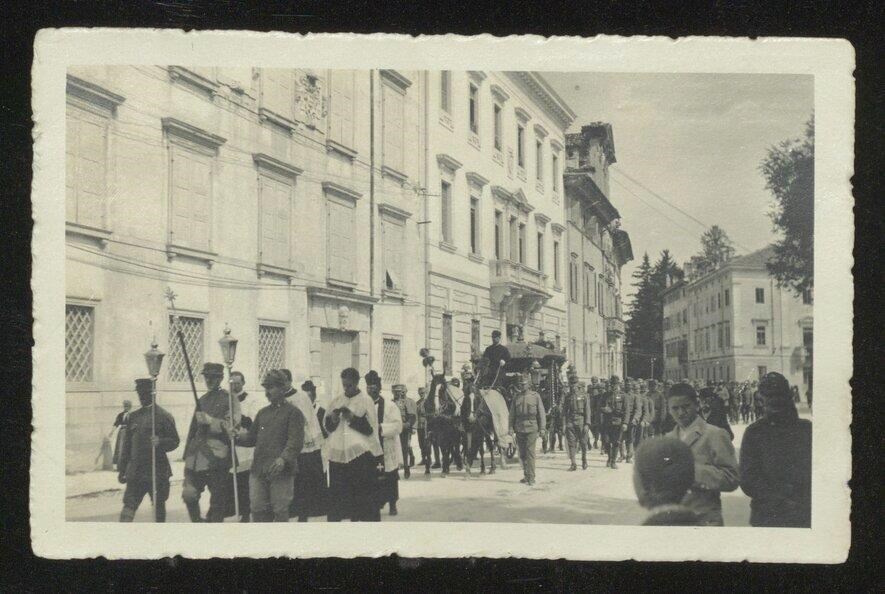 Corteo funebre che accompagna il defunto tenente medico Tomaso Maina di Torino, prigioniero durante la Prima Guerra Mondiale.