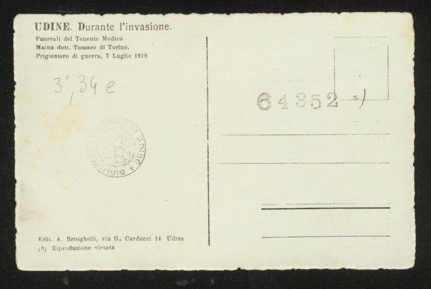 Funerali del tenente Medico Maina dott. Tomaso di Torino. Prigioniero di guerra, 7 Luglio 1918