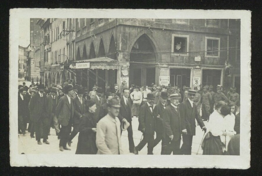 Corteo funebre che accompagna il defunto tenente medico Tomaso Maina di Torino, prigioniero durante la Prima Guerra Mondiale.