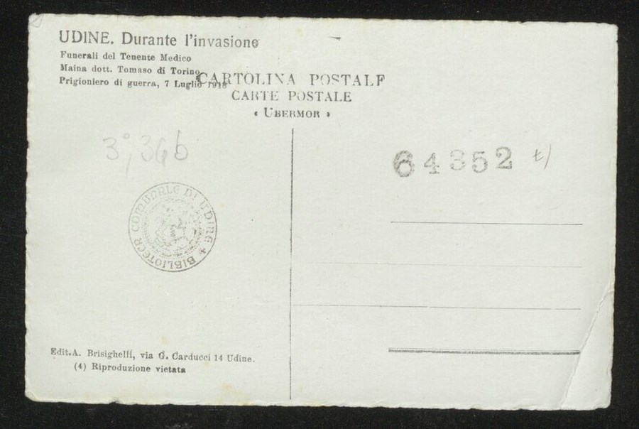 Funerali del tenente Medico Maina dott. Tomaso di Torino. Prigioniero di guerra, 7 Luglio 1918