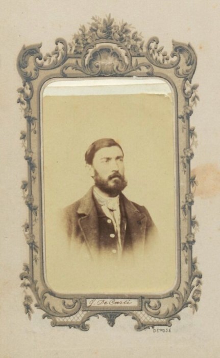 Giuseppe De Carli nasce a Gemona nel 1825. Spende la sua giovinezza a favore delle cause politiche in cui crede: nel 1848 partecipa come volontario all’eroica difesa di Venezia; assume poi servizio presso la Marina Veneta come sottocommissario di guerra e il 17 luglio 1849 viene promosso commesso di seconda classe ottenendo anche due decorazioni. Nell’agosto del 1850 rientra a Gemona e viene arrestato dagli austriaci con l’accusa di cospirazione ed incarcerato per oltre 100 giorni nelle prigioni del Castello di Udine. Attorno al 1865 intraprende dilettantisticamente la professione di fotografo, che affianca a quella di politico e di imprenditore: nel 1857 aveva infatti avviato una filanda, dove nel 1865 introdusse l'evoluto sistema di lavorazione detto Sarcinelli ed inaugurando poi nel 1881 il primo opificio meccanico a Gemona. Muore a Gemona nel 1902.
