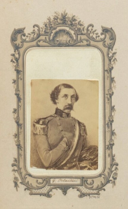 Riproduzione fotografica di un'incisione raffigurante il Bersagliere G. Orlandini in divisa