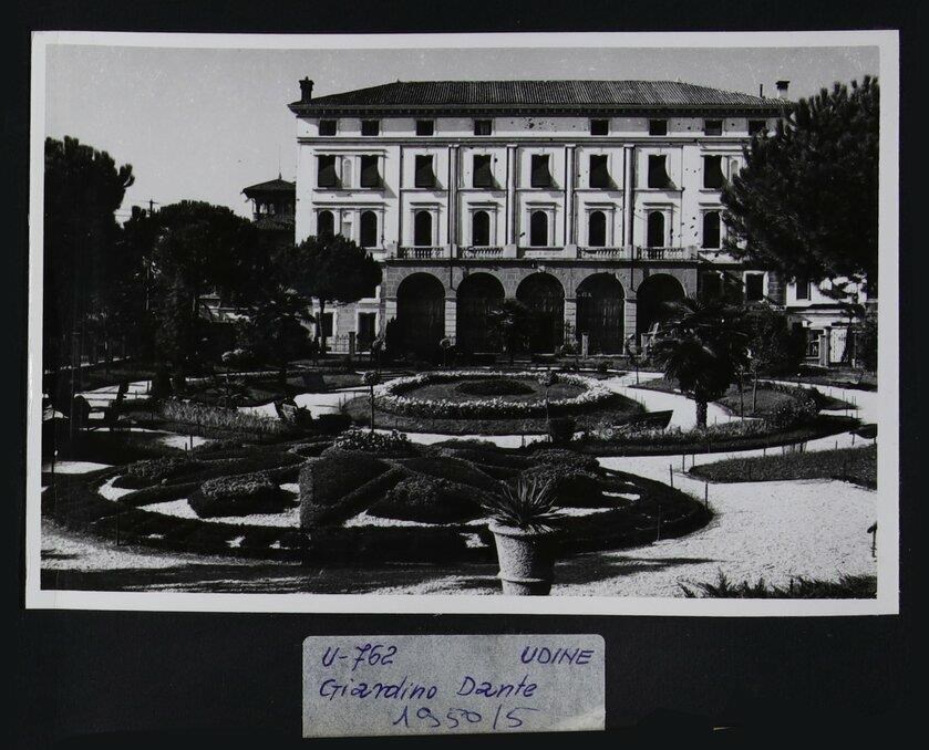 Udine: in primo piano, il Giardino "Giovanni Pascoli" progettato da Ettore Gilberti (inizi degli anni Trenta del Novecento), in origine chiamato "Giardini pubblici Arnaldo Mussolini".