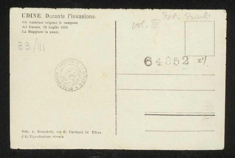 Gli austriaci tolgono le campane del Duomo. 13 luglio 1918. La Maggiore in pezzi.