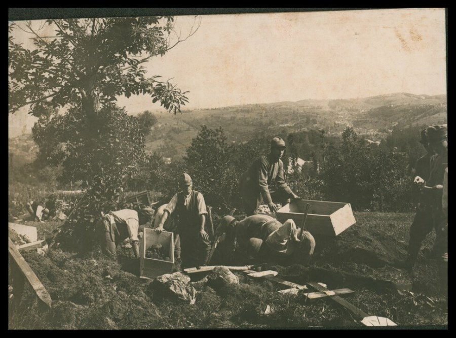 Disseppellimento di salme di caduti della Prima Guerra mondiale
