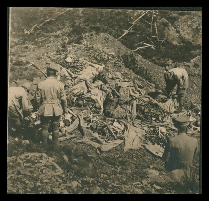 Gruppo di soldati intenti nel recupero di salme dei caduti della Prima Guerra mondiale
