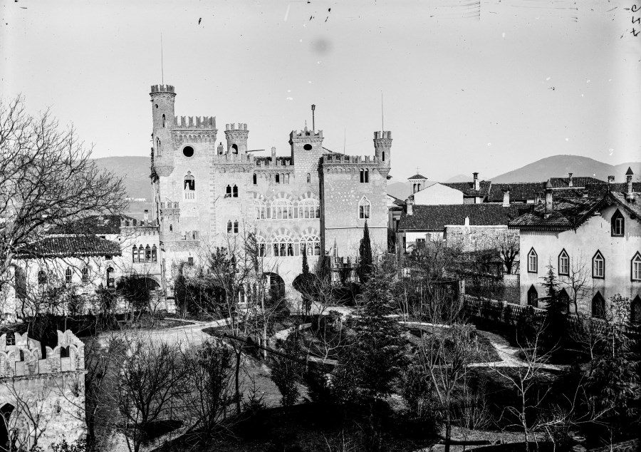 Veduta del Castello Canussio-Craigher e dei giardini a Cividale del Friuli. Si erge di fronte alla chiesa di San Silvestro e San Valentino, venne edificato nell’Ottocento dal Barone austriaco Craigher sul luogo ove sorgeva la residenza tardo medievale della nobile famiglia Canussio.
