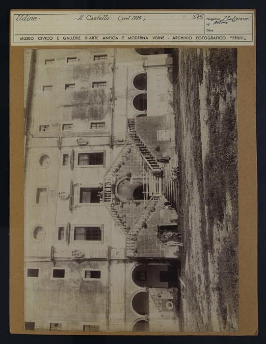 Udine: facciata posteriore del castello. Malignani è vissuto sul colle del castello, dove ha installato una stazione meteorologica.