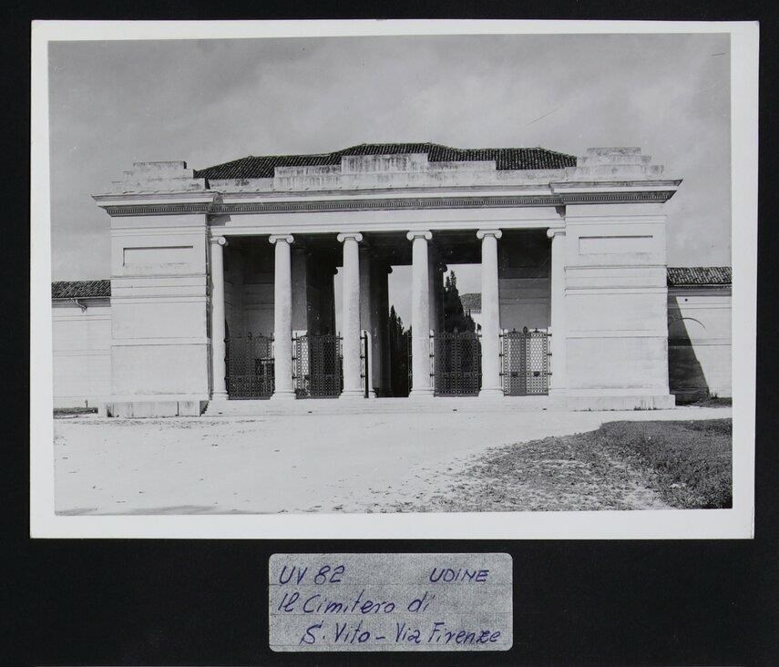 Udine, via Firenze: ingresso monumentale del cimitero di San Vito, con sei colonne ioniche.
