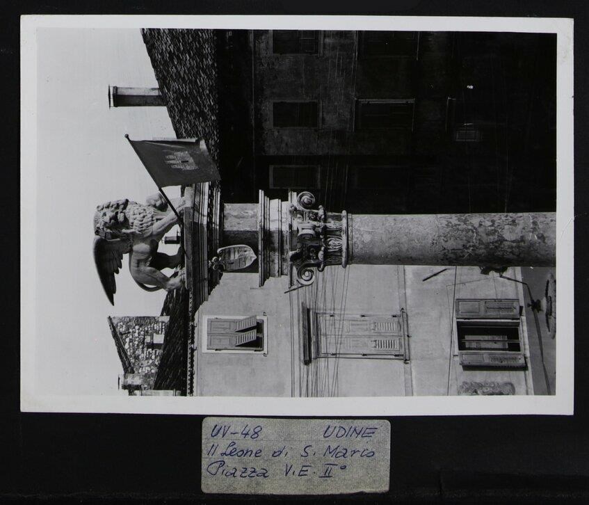 Udine, piazza Vittorio Emanuele II (piazza Libertà): la colonna corinizia (1539) con il leone della Repubblica di Venezia, posizionato sulla sopracitata colonna nel 1883. Il leone tiene in mano una bandiera rappresentante un castello con tre torri.