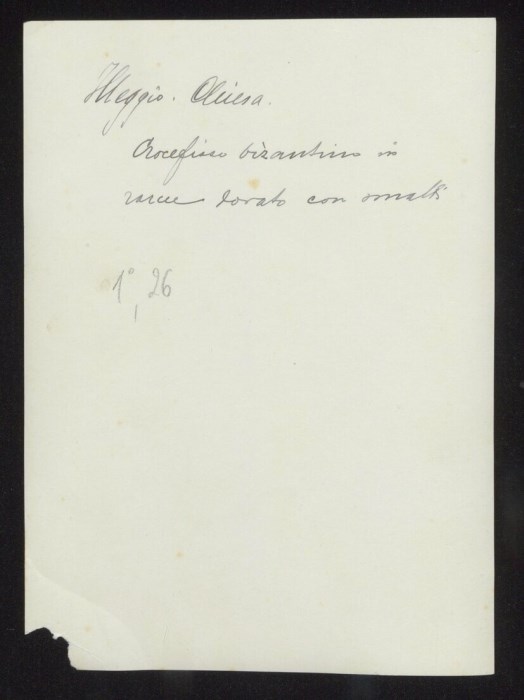 Illegio. Chiesa. Crocefisso bizantino in rame dorato con smalti