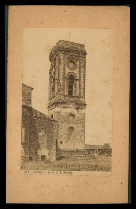 Veduta della torre della Basilica di San Miniato al Monte a Firenze.