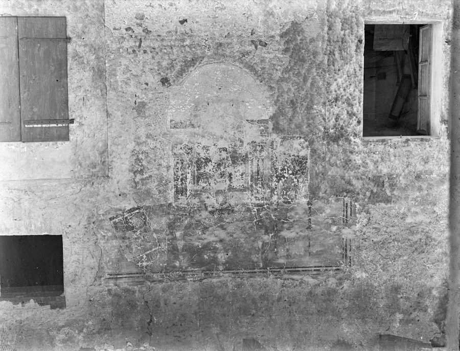 Riproduzione fotografica di un affresco su muro esterno di un'abitazione, completamente scomparso.
