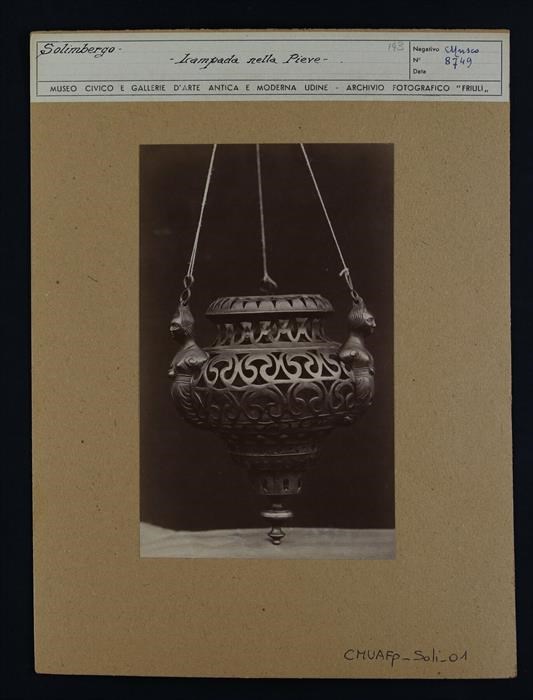 Sequals, Solimbergo, parrocchia dei Santi Nomi di Gesù e Maria: lampada d'ottone trecentesca.