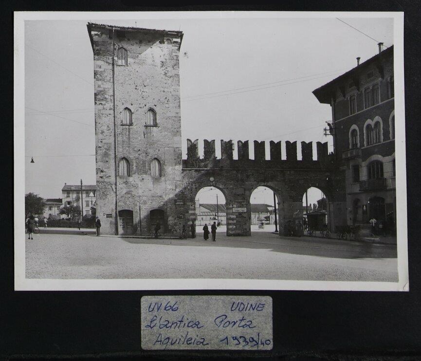 Udine, piazzale Gabriele D'Annunzio: veduta di Porta Aquileia (metà del Trecento), quinta cerchia muraria.